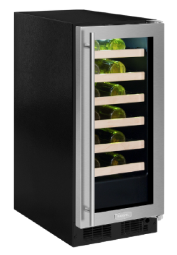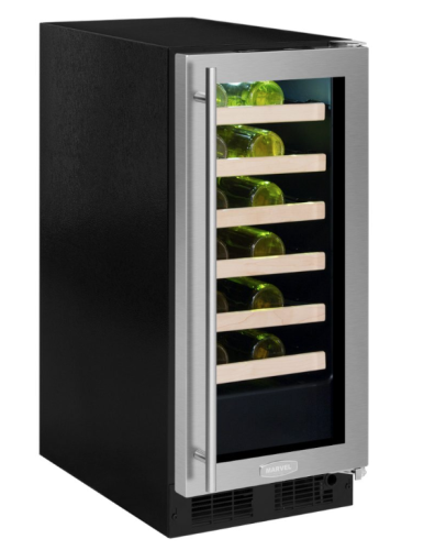 The energy- and space-efficient way to store fine vintage wines, the 15" Marvel Wine Refrigerator stores 24 bottles in the optimum wine preservation environment. Unlike most wine coolers, Marvel wine refrigerators are engineered to defend against the enemies of wine, like damaging light, temperature fluctuation and vibration. The tinted dual pane UV-resistant glass door protects wine from light while artfully showcasing your wine collection. Its Vibration Neutralization System- buffers wine from agitation, allowing it to come to full maturation. Marvel Intuitcontrols allow you to target a precise temperature with an energy-efficient performance twice as efficient as other brands. And, Dynamic Cooling Technologyand a thermal-efficient cabinet ensures the industry's best temperature stability, safely bringing wine to temperature without compromising its integrity.