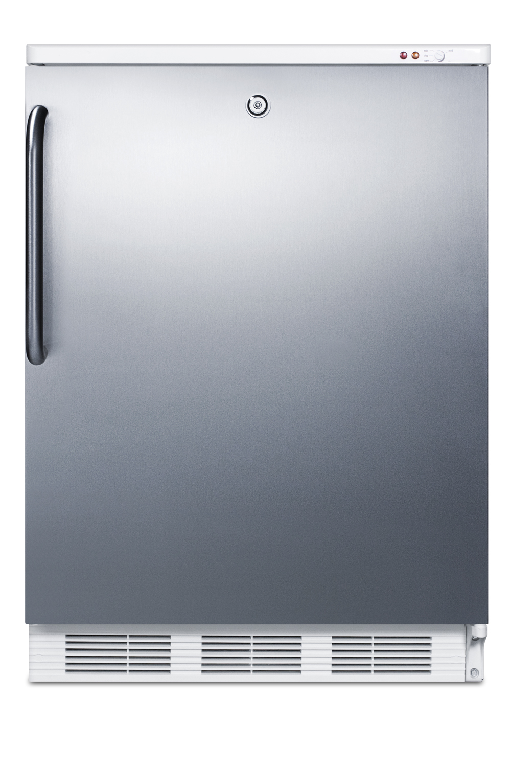 Accucold VT65M7BI medical all-freezers offer low temperature storage for built-in installation, designed and approved for commercial use.The VT65ML7BISSTB is a 24” wide all-freezer capable of built-in or freestanding use, with low temperature manual defrost operation that can reach -25ºC. The interior includes three slide-out basket drawers for convenient storage that keeps items cold when the door is opened. Additional features include an adjustable thermostat and one-piece interior liner for easier cleanup.This medical unit has a white cabinet with a grade stainless steel wrapped door. A professional stainless steel handle in curved ‘towel bar’ style completes the look and a factory installed lock offers added security. This model is ETL-S listed to NSF-7 commercial standards.NOTE: ALL VT65M FREEZERS ARE DESIGNED FOR MEDICAL OR COMMERCIAL USE ONLY. THESE ARE NOT HOUSEHOLD FREEZERS.