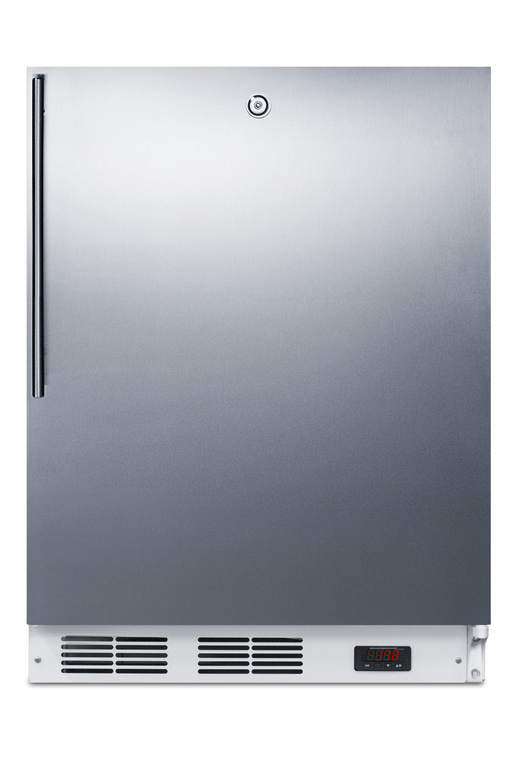 Accucold VT65M7ADA commercially approved medical all-freezers offer low temperature storage in a perfectly sized footprint designed for freestanding use in ADA compliant settings.The 32” high VT65ML7SSHVADA has a 24” footprint and is designed for freestanding use, with low temperature manual defrost operation that can reach -25ºC. The interior includes three slide-out basket drawers for convenient storage that keeps items cold when the door is opened. Additional features include an adjustable thermostat and one-piece interior liner for easier cleanup.This medical unit has a white cabinet and 304 grade stainless steel wrapped door with a sleek vertically mounted handle. A factory installed lock offers added security. This unit is ETL-S listed to NSF-7 commercial standards.NOTE: ALL VT65M FREEZERS ARE DESIGNED FOR MEDICAL OR COMMERCIAL USE ONLY. THESE ARE NOT HOUSEHOLD FREEZERS.
